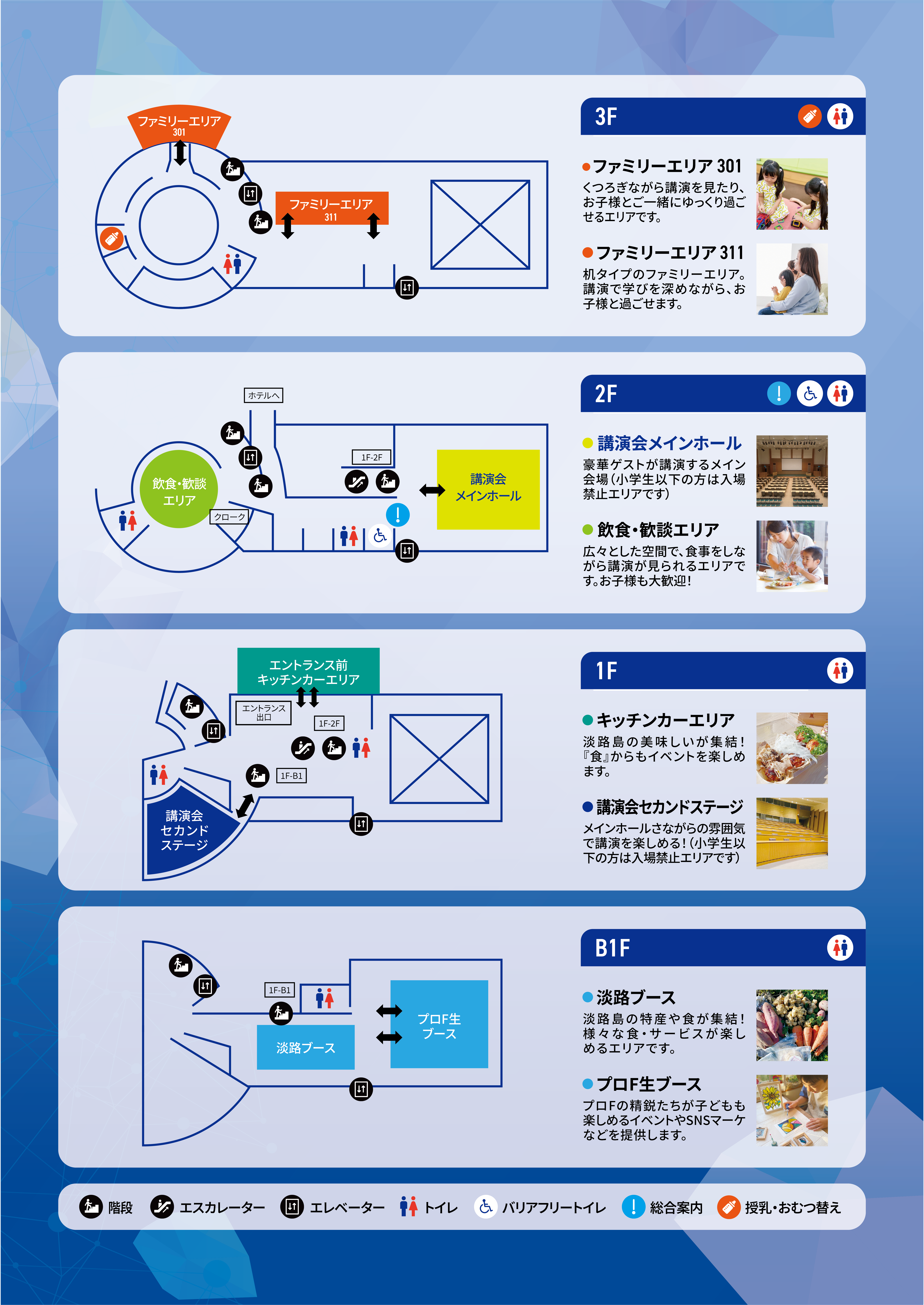 - ※ 小学生以下は入場無料、ただし講演エリアへは入れませんので、ファミリーエリアなどをご利用ください。