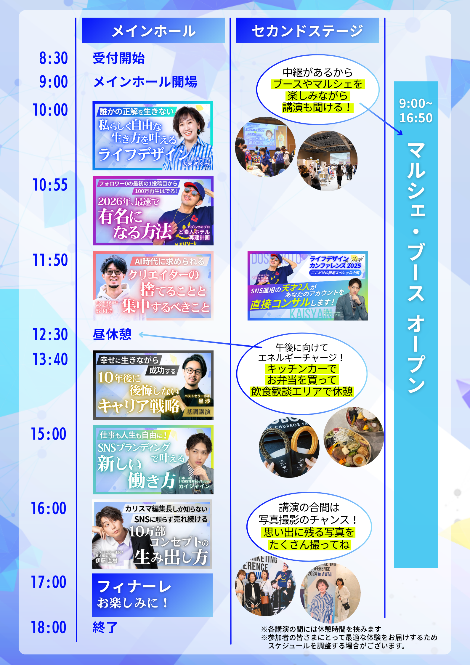 イベント開催中の館内の出入りは自由です。講演メインホールについては、入場制限がある場合や途中参加できないものもありますのでご注意ください。