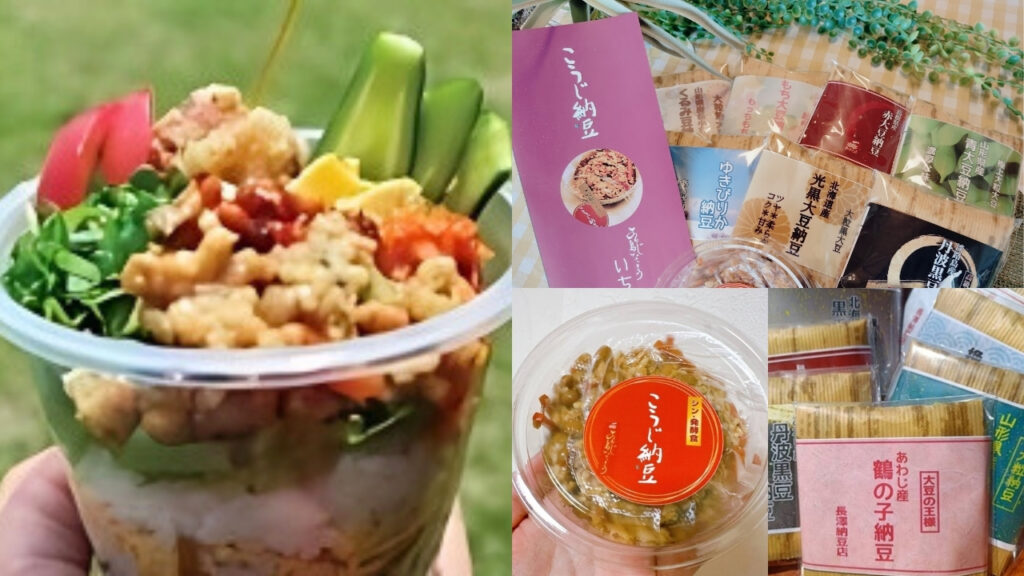出店内容 : 寿司パフェ・こうじ納豆・経木納豆食べ比べセット